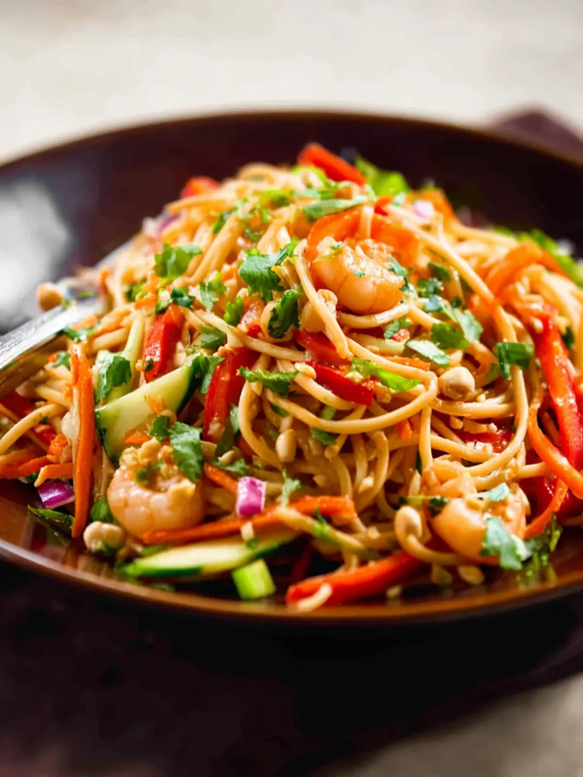 Absolutely! Asian Noodle Salad is perfect for making ahead as the flavors deepen and improve after a day in the fridge. If you’re planning for a gathering or a busy week, just toss all the ingredients together the day before. Simply hold off on adding any delicate toppings like peanuts or herbs until just before serving to keep everything fresh and crunchy.
