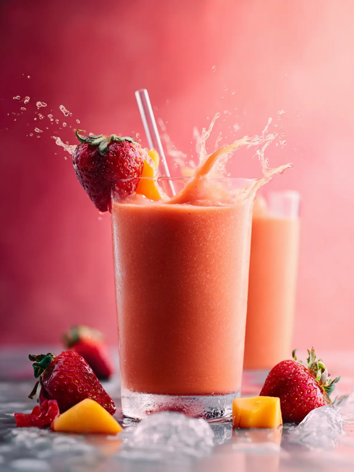 Fruits are the stars of this smoothie. While ripe, fresh mangoes and strawberries enhance the dish’s sweetness, it’s crucial to use frozen fruits. They provide the thick, creamy texture we crave, mimicking the delightful consistency of Jamba’s version. If you only have fresh fruits, consider adding some ice for that chill and thickness.