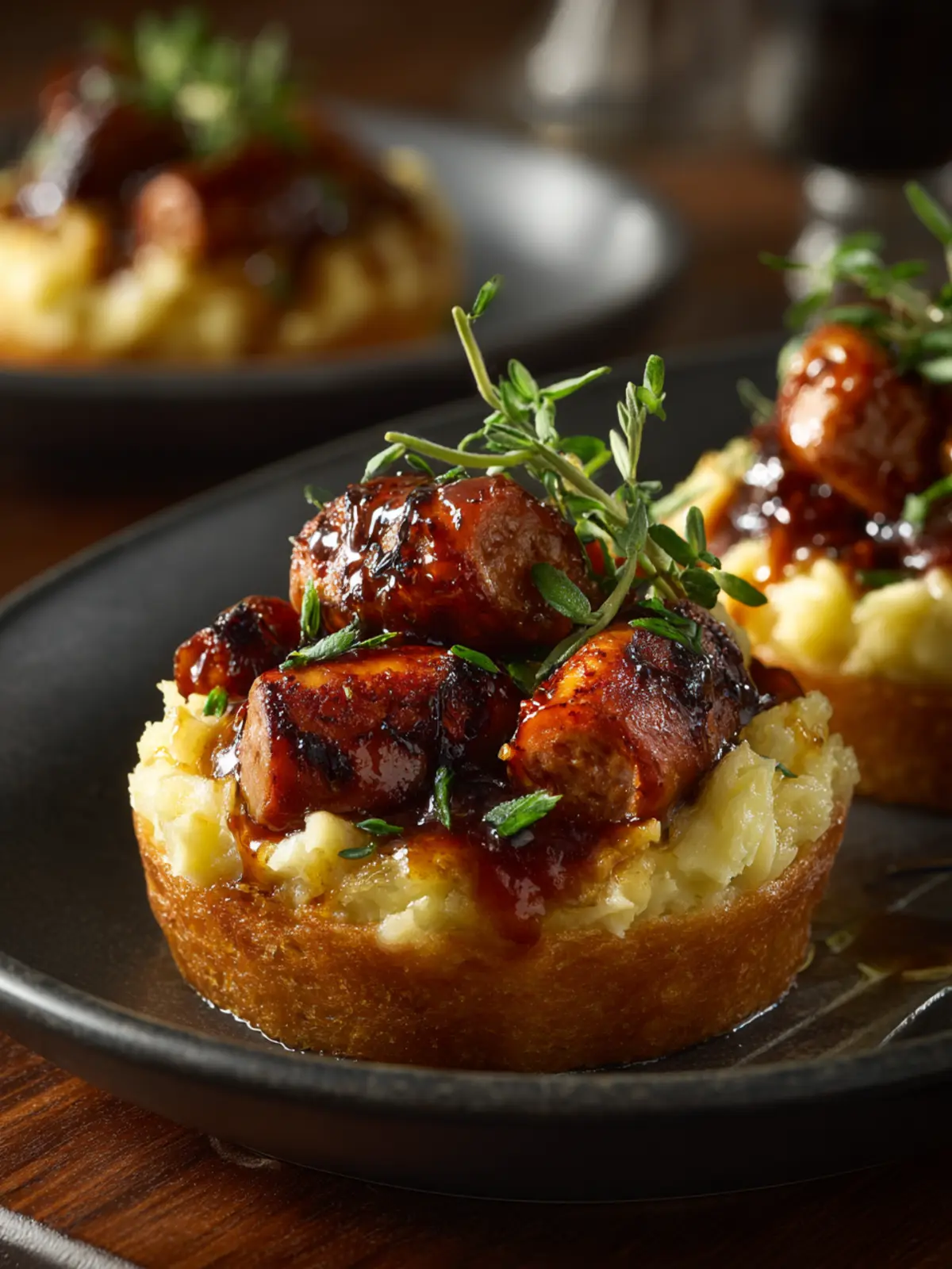 Rustic Serving Platter: Arrange your bangers & mash cups on a wooden board. The natural texture contrasts beautifully with the creamy mashed potatoes and golden sausages.