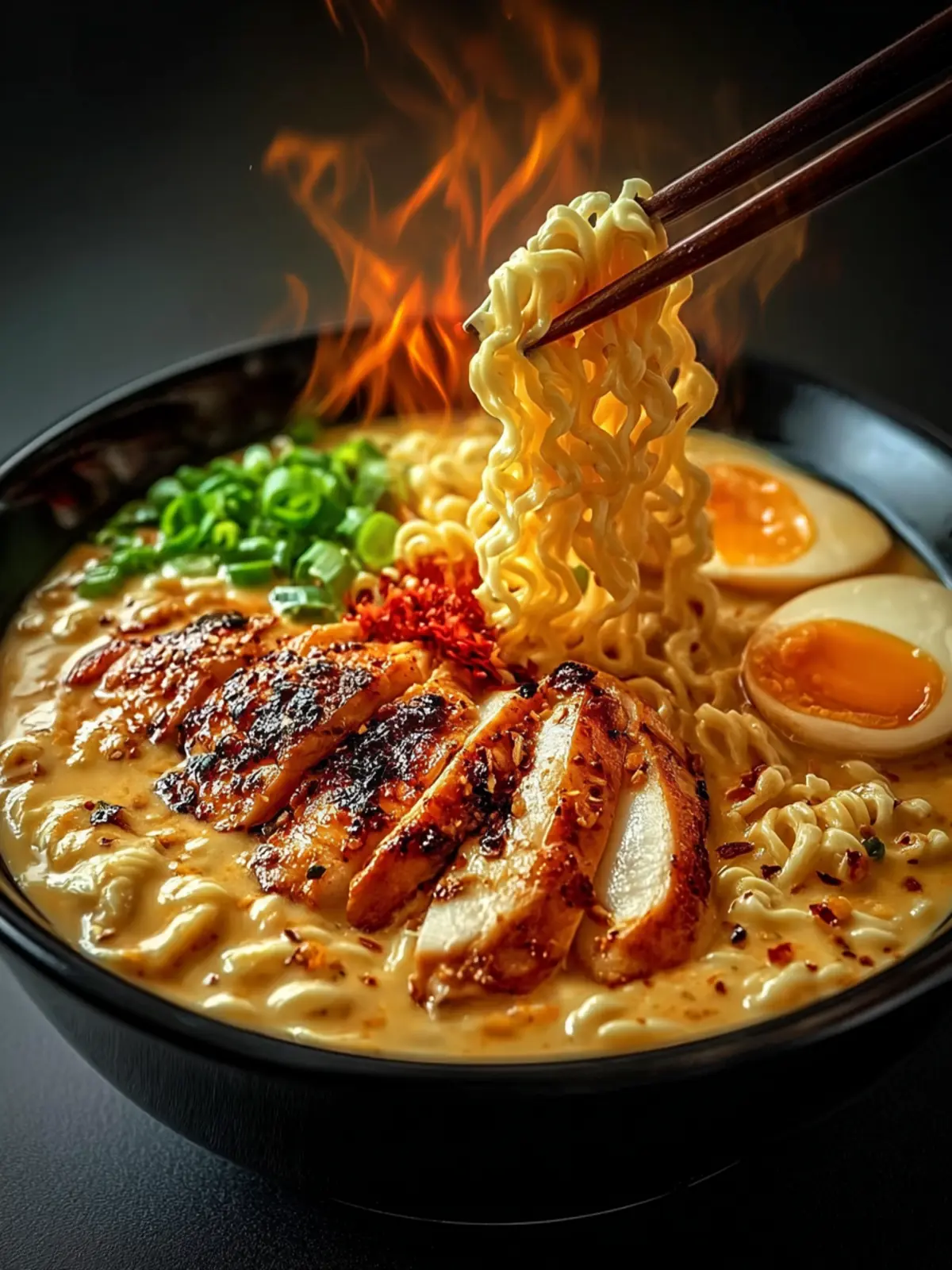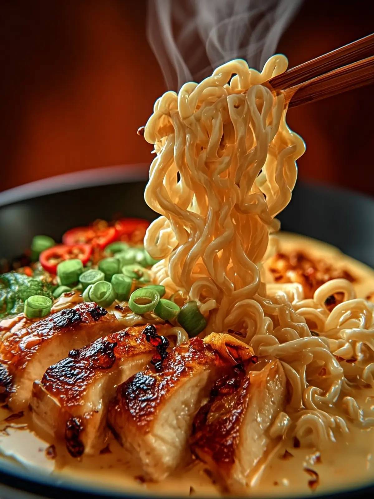 Fiery Chicken Ramen: Indulgent Creamy Garlic Dream Bowl