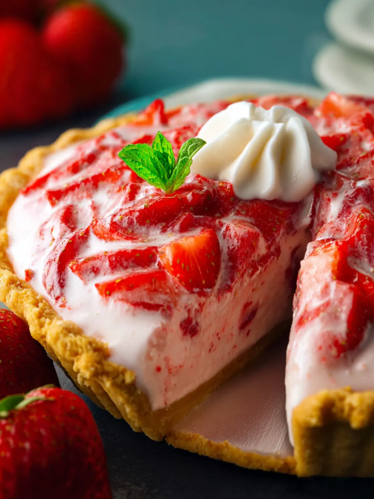 Whipped cream is a timeless companion to any dessert! A generous dollop on each slice enhances the creaminess of the pie and complements the strawberries perfectly. For an elegant touch, consider adding a dash of vanilla or a sprinkle of powdered sugar to your whipped cream.