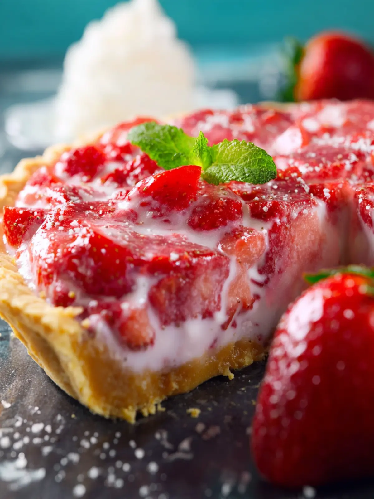 Whipped Topping: Topping your frozen strawberry pie with whipped cream adds an airy texture and visuals that make the pie irresistible.