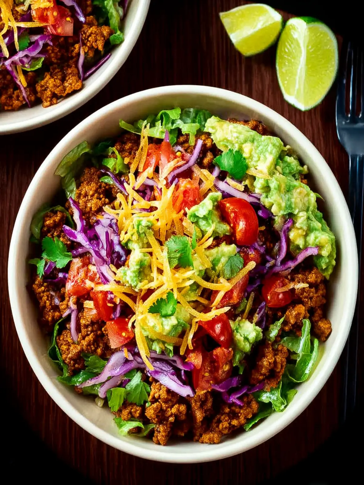 These bowls are completely versatile, enabling you to tailor each one to your liking. Are you a fan of guacamole? Go ahead and add a generous scoop! Prefer a little more spice? Toss in some jalapeños or a splash of hot sauce. The creativity doesn’t end there. You can serve these taco bowls over a bed of rice, quinoa, or even lettuce for a lighter option, making them equally adaptable for low-carb eaters.