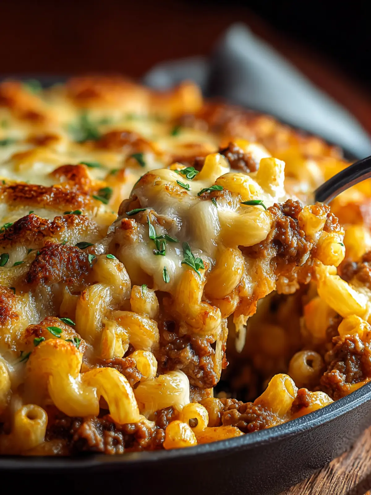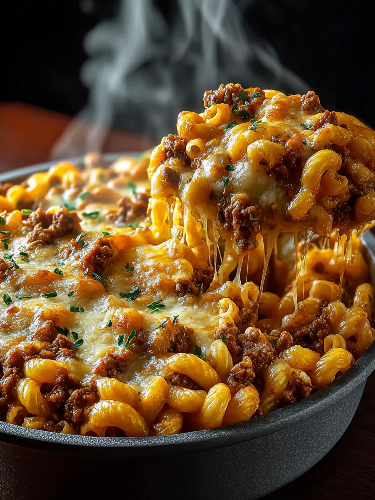 A delicious cheesy beef and macaroni dish perfect for family dinners.