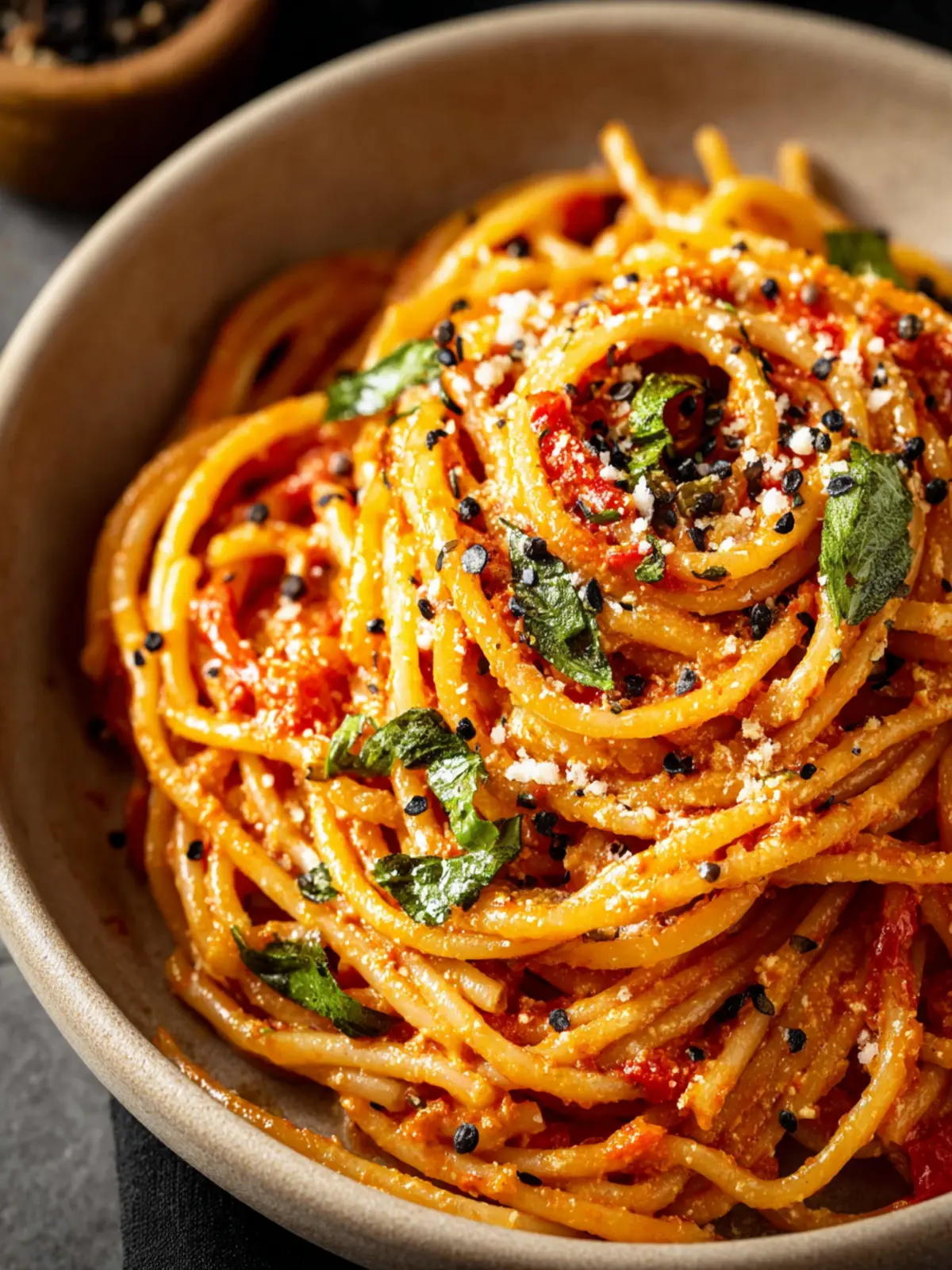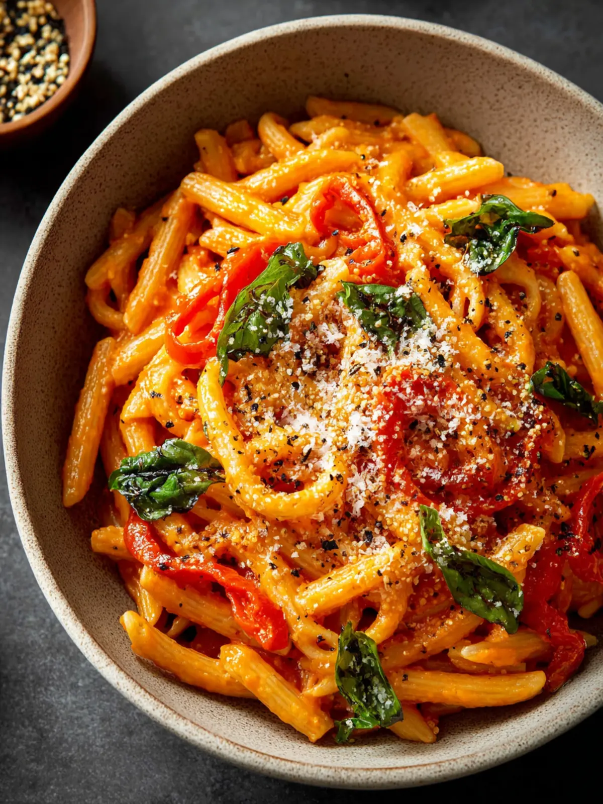 Fresh Basil: Garnishing with fresh basil not only adds a pop of color but also a burst of freshness, making your roasted red pepper pasta truly irresistible.