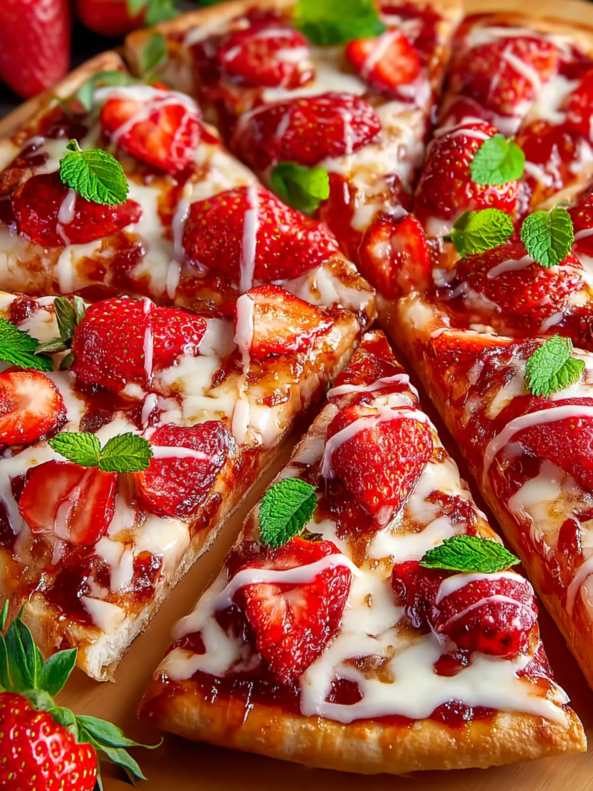 • Tropical Blend: Add slices of mango or kiwi to give your pizza a tropical twist. The sweetness of these fruits complements the strawberries beautifully.