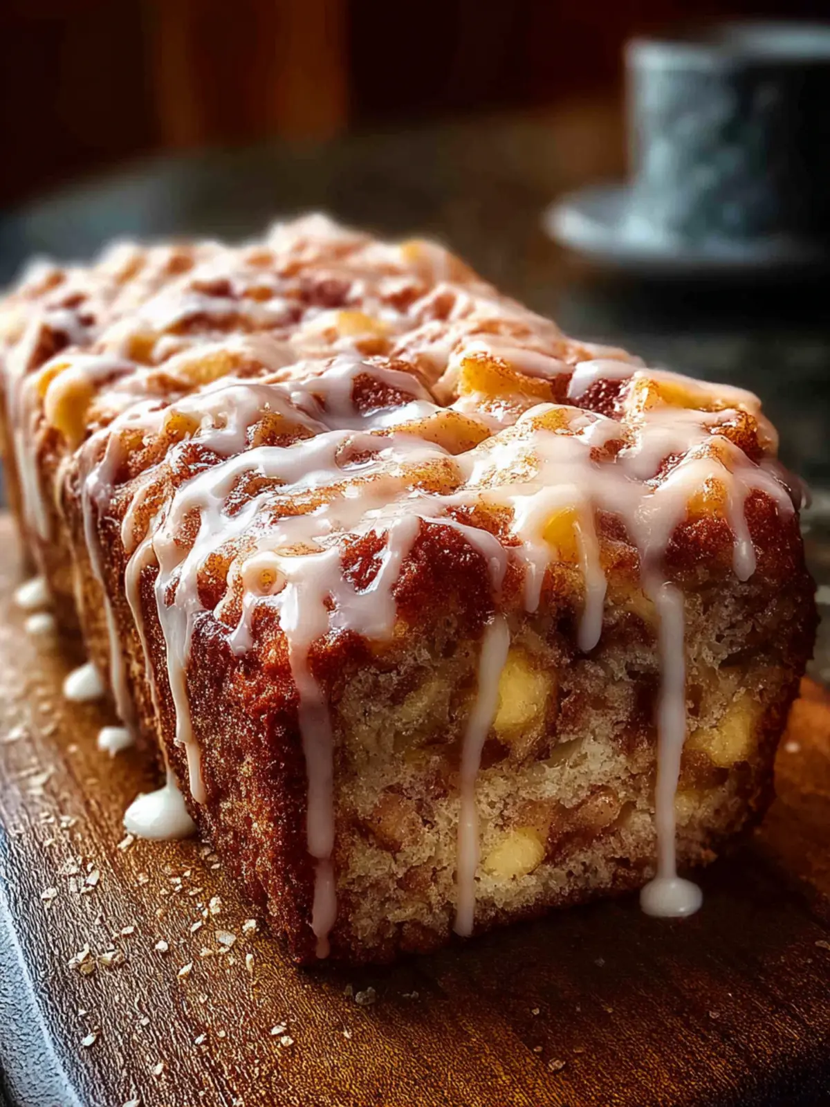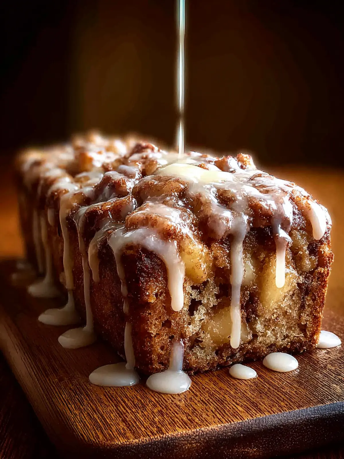 The magic begins with the tender, moist bread that forms the base of this recipe. Whether you’re enjoying it for breakfast or as an afternoon snack with a cup of coffee, each bite is like a warm hug. The freshness of apples brings a burst of flavor that complements the sweet, buttery bread perfectly. The rich, satisfying glaze adds that final touch, transforming each slice into a true indulgence.