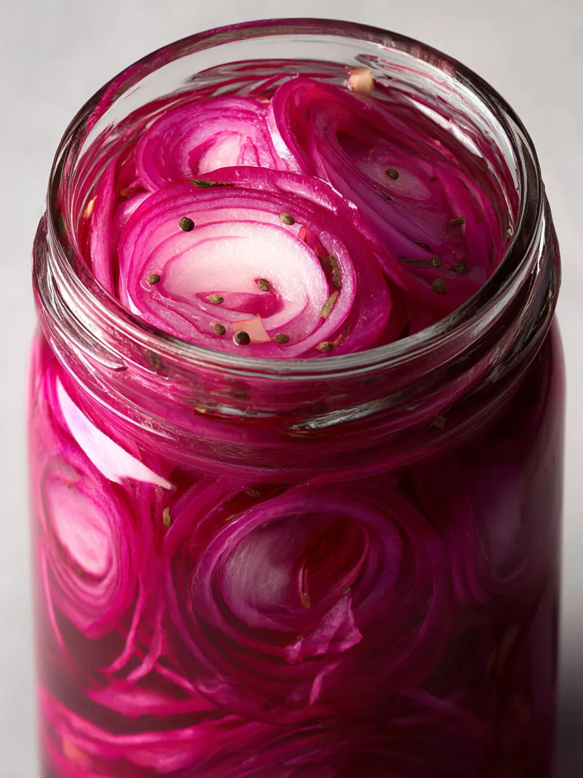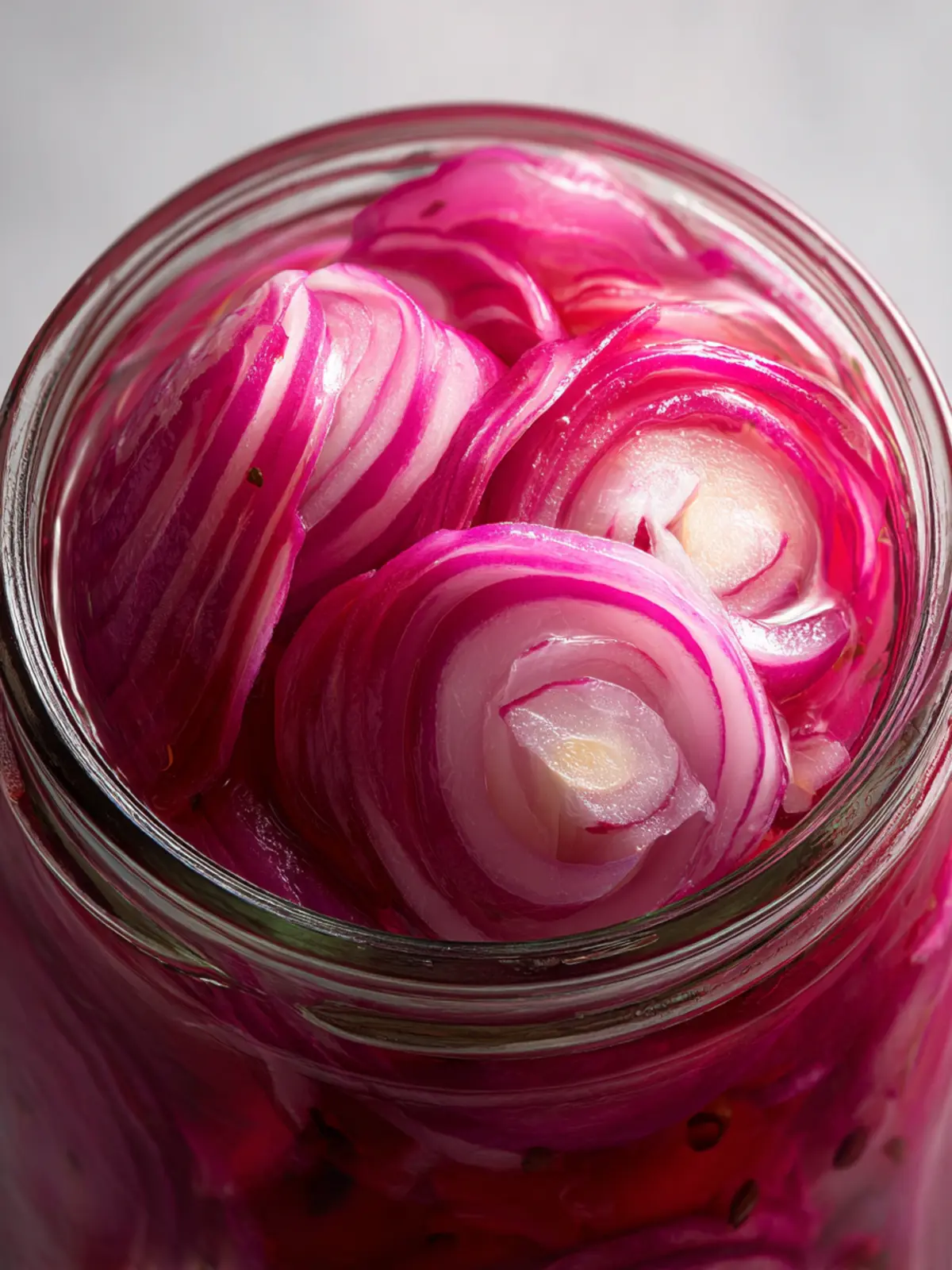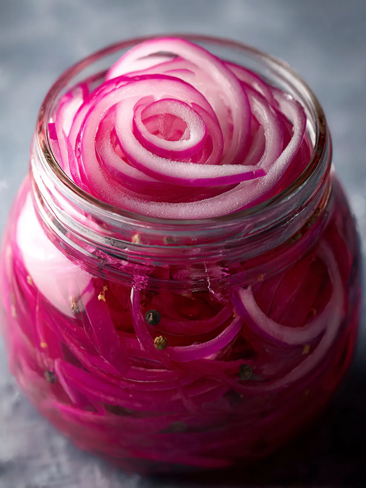 Freshness in a Jar: Who doesn’t love the idea of having a homemade condiment ready to grab whenever you need it? These pickled onions can roam in your fridge, ready to enliven any dish they touch, reflecting the essence of simple yet impactful home cooking.