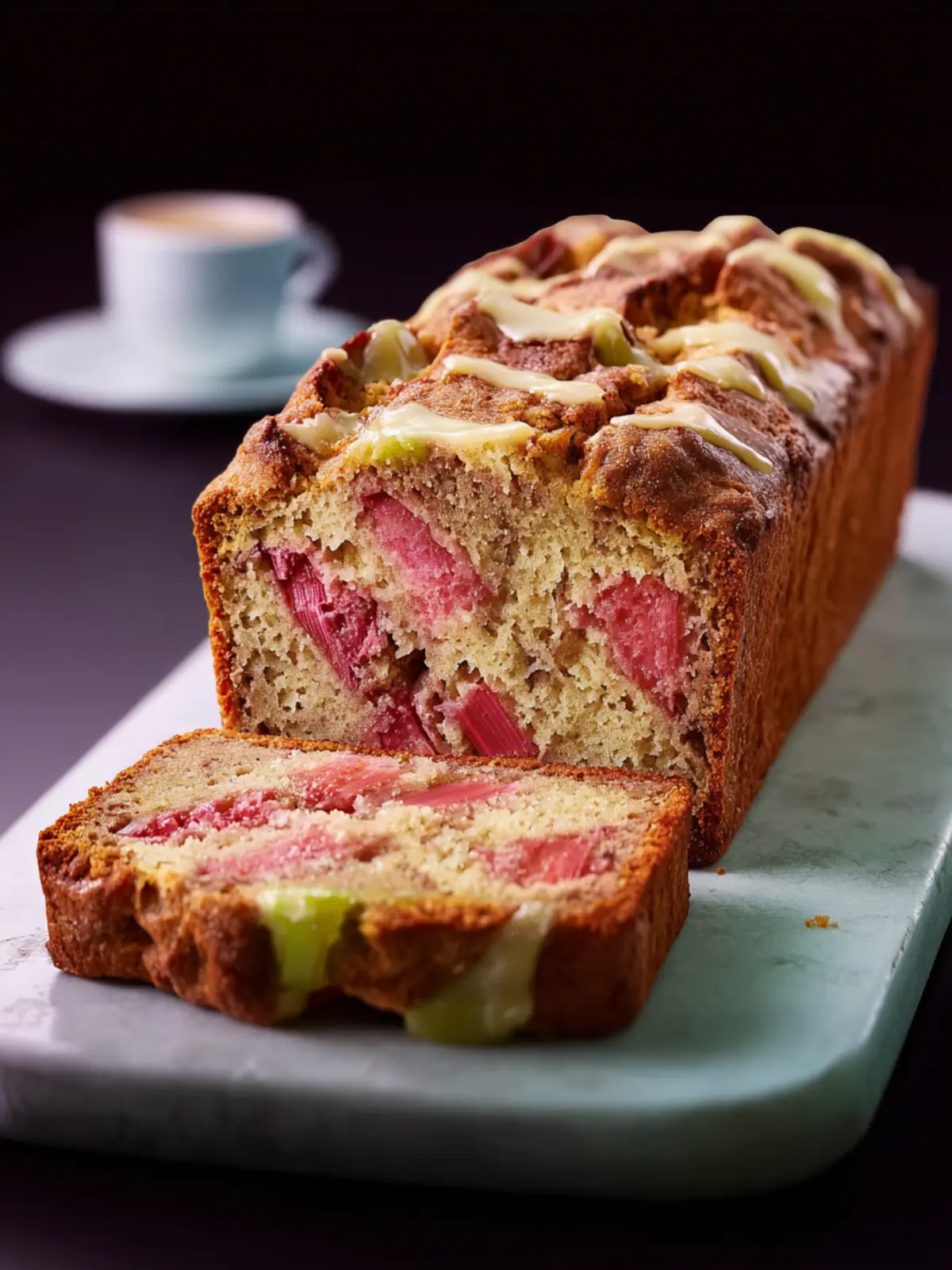 Finish off your loaf with a simple glaze made from powdered sugar and lemon juice. This extra layer of sweetness paired with the tangy rhubarb will add a beautiful sheen and elevate the presentation.