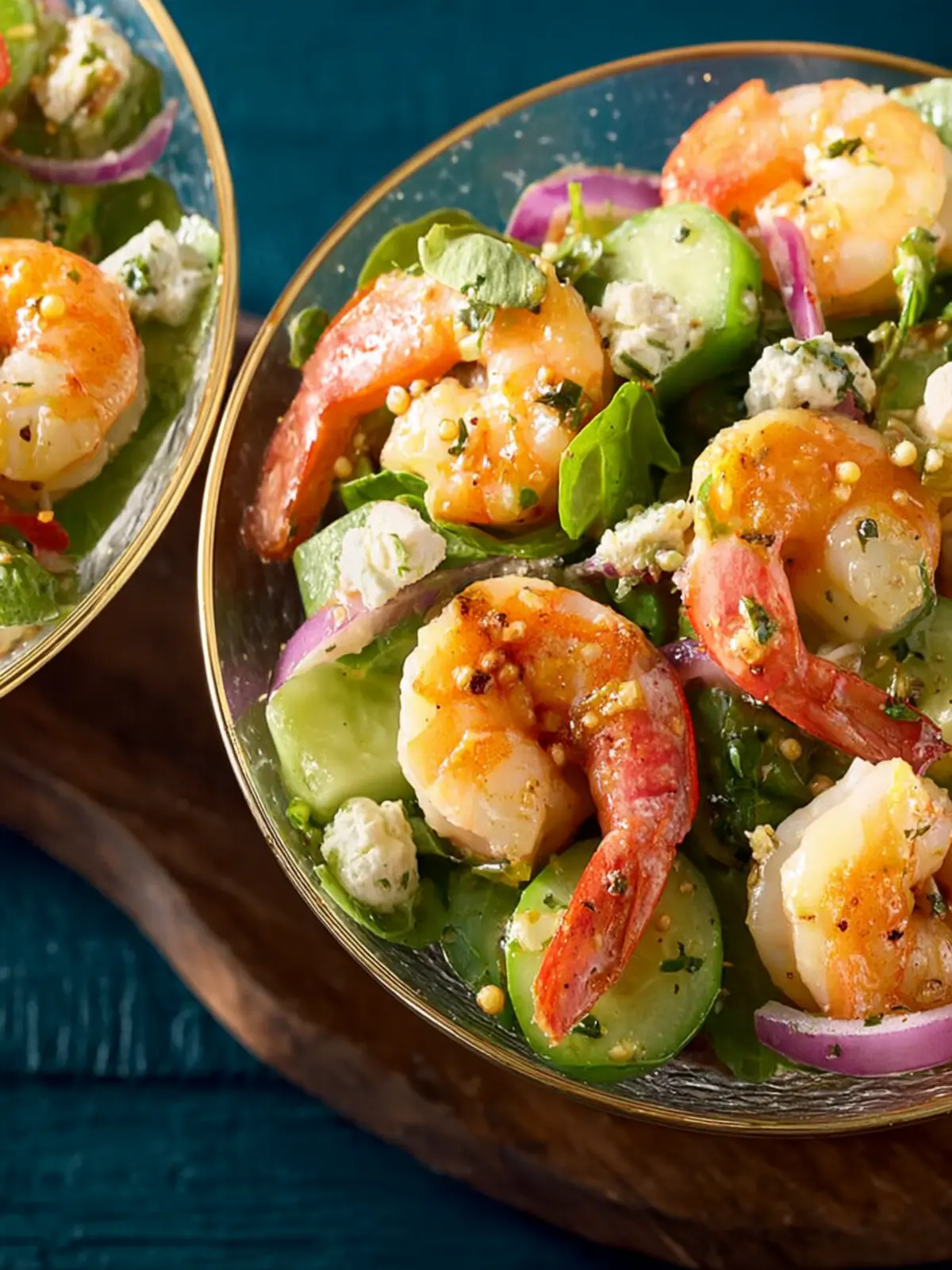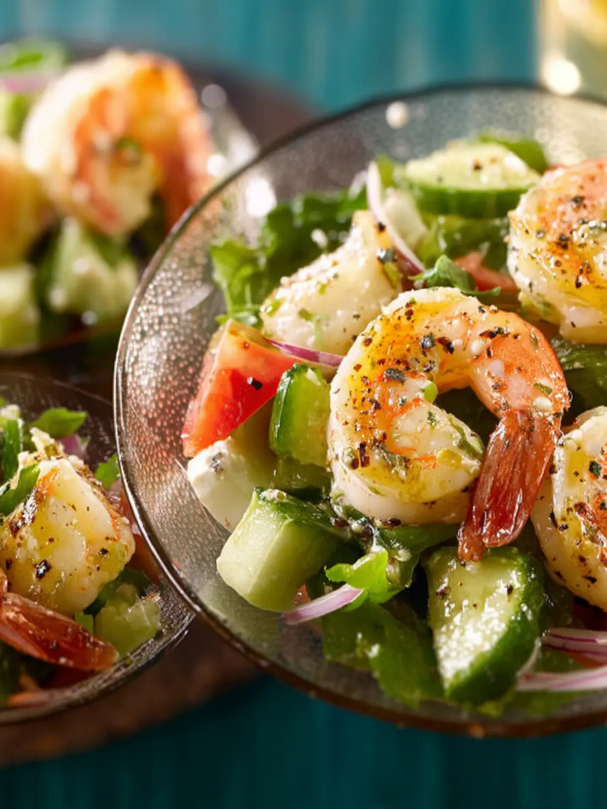 A refreshing shrimp salad with cucumber, avocado, and mint.