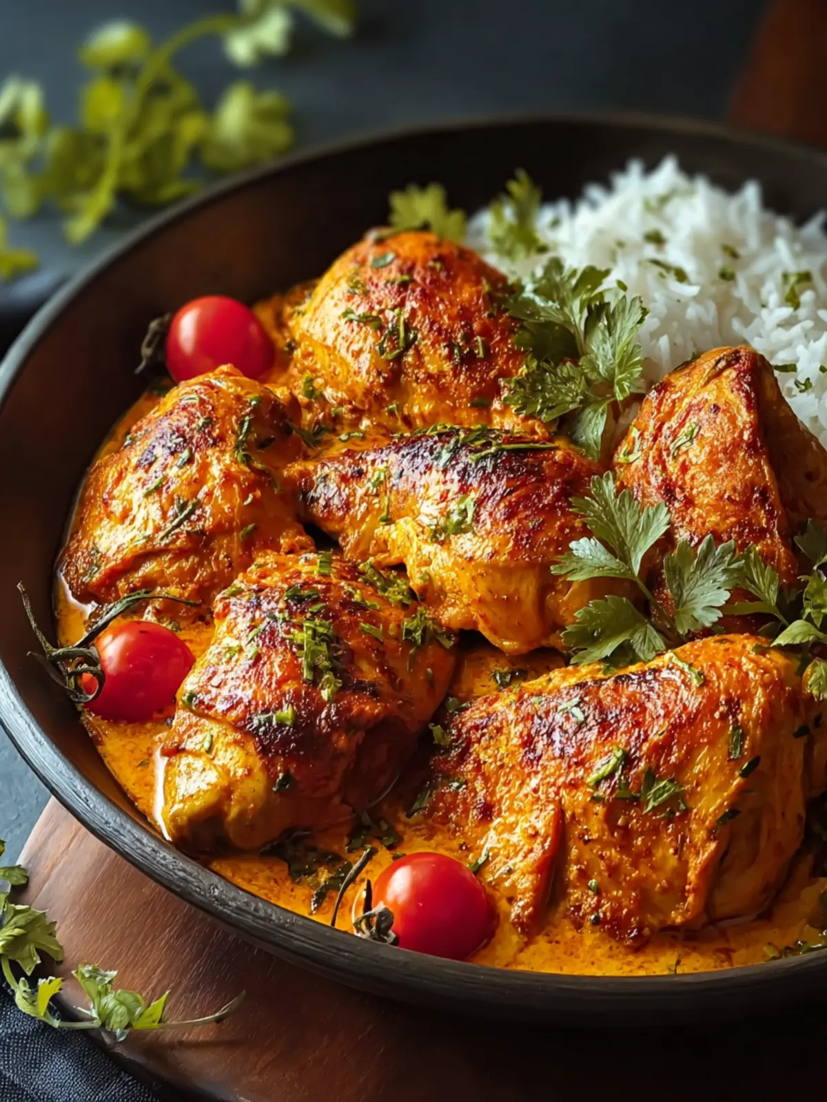 This delicious oven-baked marinated chicken thighs recipe combines coconut milk, spices, and fresh ingredients for a flavorful dish.